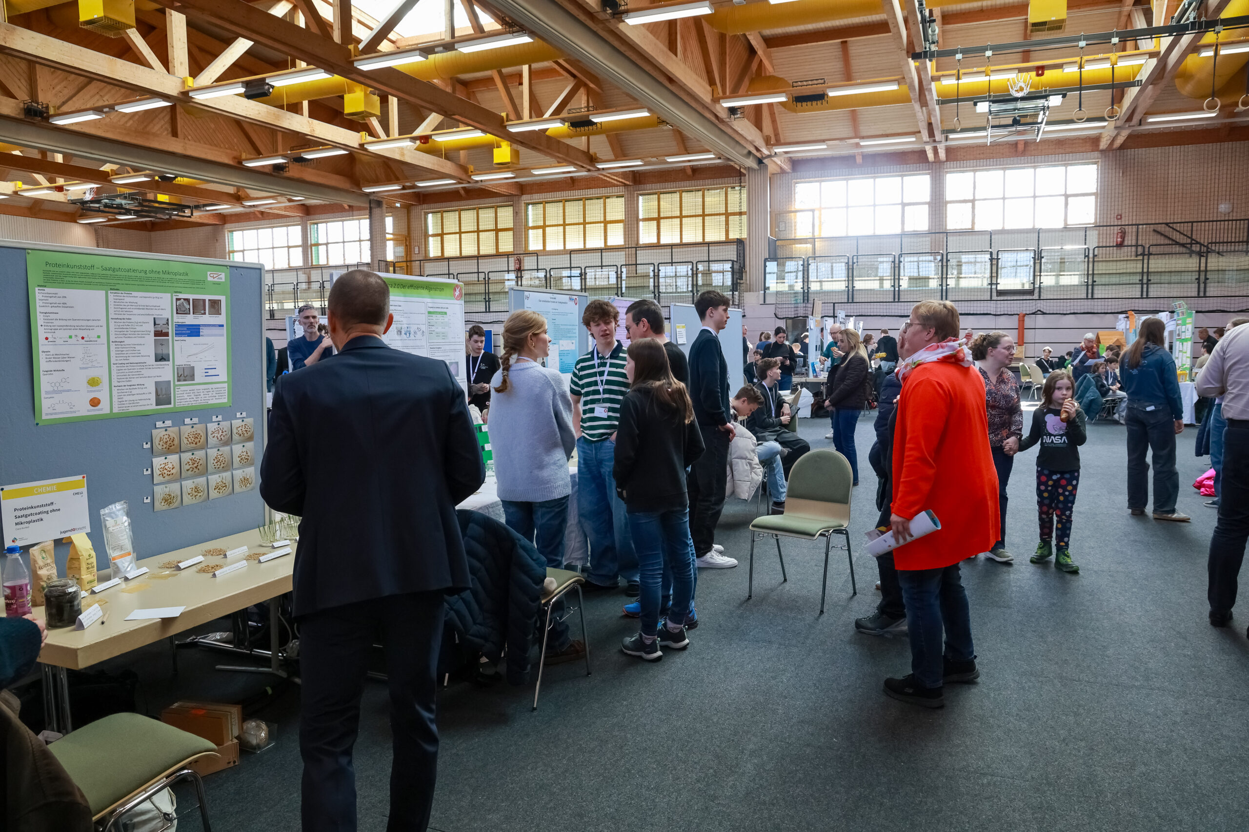 Der Wettbewerbsmodus unterscheidet zwei Alterskategorien: „Jugend forscht Junior“ für Schülerinnen und Schüler ab der 4. Klasse sowie „Jugend forscht“ für Jugendliche zwischen 15 und 21 Jahren. Die sieben Fachbereiche umfassen Arbeitswelt, Biologie, Chemie, Geo- und Raumwissenschaften, Mathematik/Informatik, Physik und Technik. Eine Jury aus Vertreterinnen und Vertretern von Schule, Hochschule und Wirtschaft bewertete die eingereichten Projekte anhand inhaltlicher, konzeptioneller und gestalterischer Kriterien. Die jungen Forschenden präsentierten ihre Arbeiten auf individuell gestalteten Messeständen und gaben Einblicke in ihre Forschungsergebnisse.
